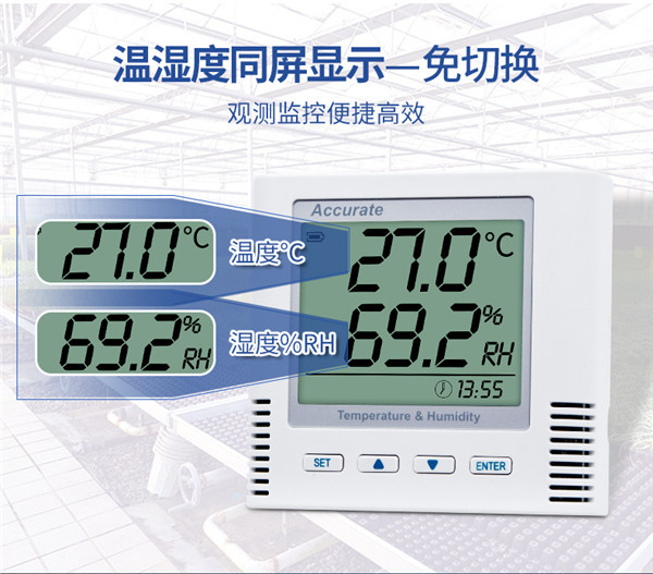 该传感器带有液态结晶体显露,实时显露温潮润润泽程度,设有多功能防尘按钮,设备共有六种项目可设置:地址、波特率、温度最大限度、温度下温度记录器限、潮润润泽程度下限。内置蜂窝报警器,当温潮润润泽程度超过限定值时自动报警,及时掌握环境变化。
