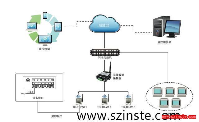 然后,我们需要将温度和湿度传感器安装在合理的位置,但是为了确保设备的电源,网络和数据交换 在机房中,它已经在机柜中,各种类型的光缆,网线,电源线等线路铺设在机房桥架等位置。 在不同点接线温度和湿度传感器非常不方便。 这时,无线温度和湿度传感器在安装和部署方面显示出其优势。 传感器可以直接安装并固定在所需位置(无需拉动任何电源和通信电缆)。 无线温湿度传感器的实时数据通过无线传输自动聚合到无线数据集中器中,然后将数据集中器汇总并传输到监控平台,实现对计算机中温度和湿度的实时监控。 房间。 [1]